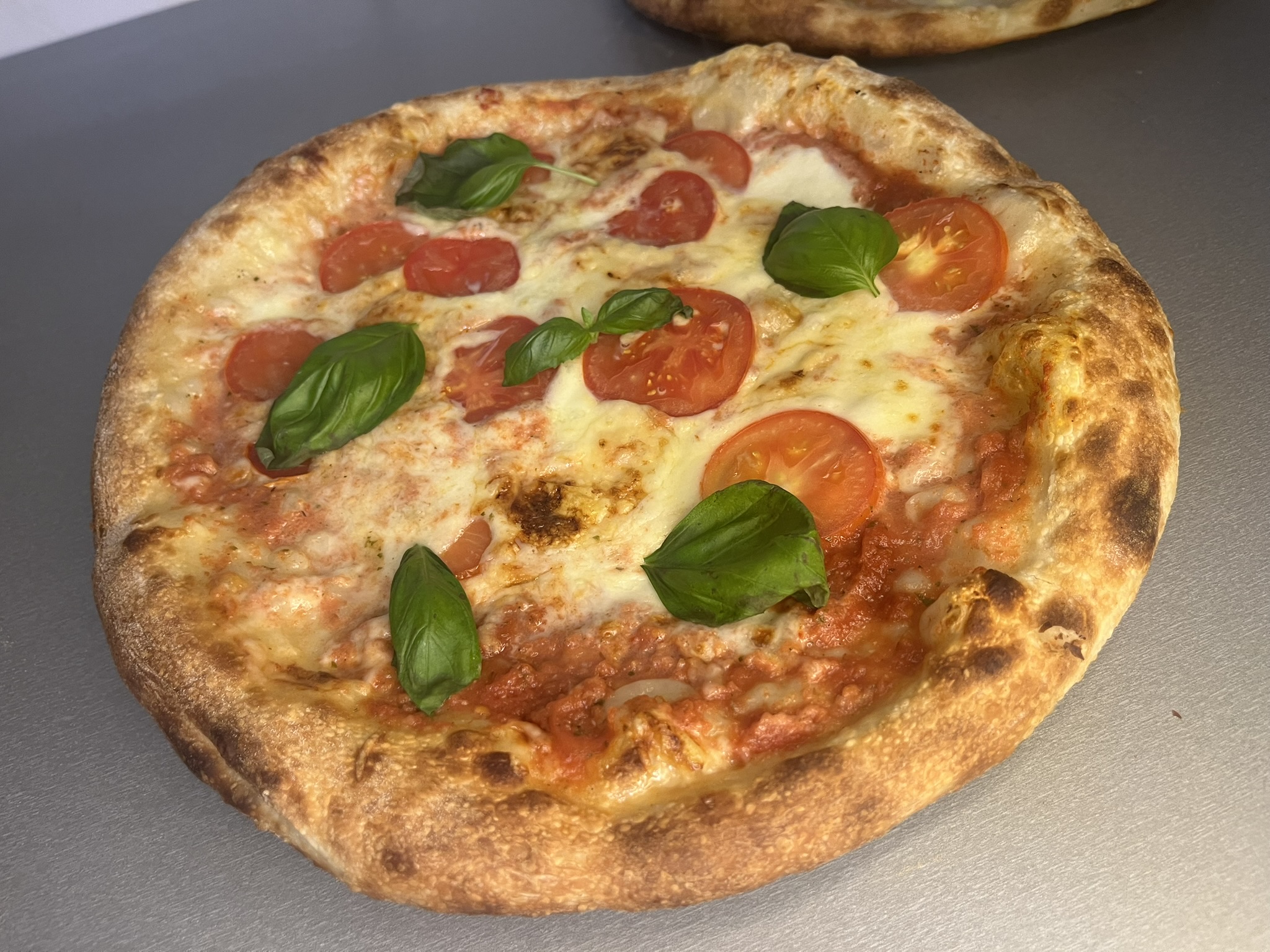 Friss, könnyed ízek puha tésztán! Házi paradicsomszósz, olvadt mozzarella, lédús paradicsomkarikák, illatos bazsalikom és egy csepp olívaolaj – tökéletes választás a természetes ízek kedvelőinek.
