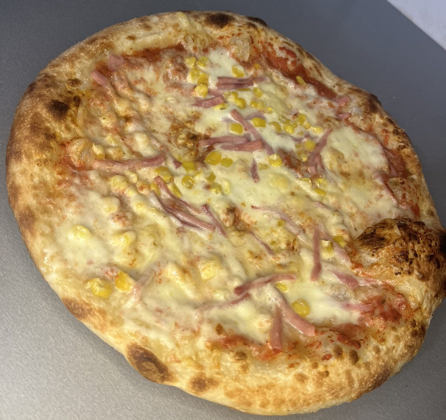 A jól bevált sonkás pizzát megbolondítjuk egy kis édes kukoricával! Puha tésztán házi paradicsomszósz, olvadt mozzarella, szaftos sonka és roppanós kukorica – igazi kedvenc kicsiknek és nagyoknak egyaránt.