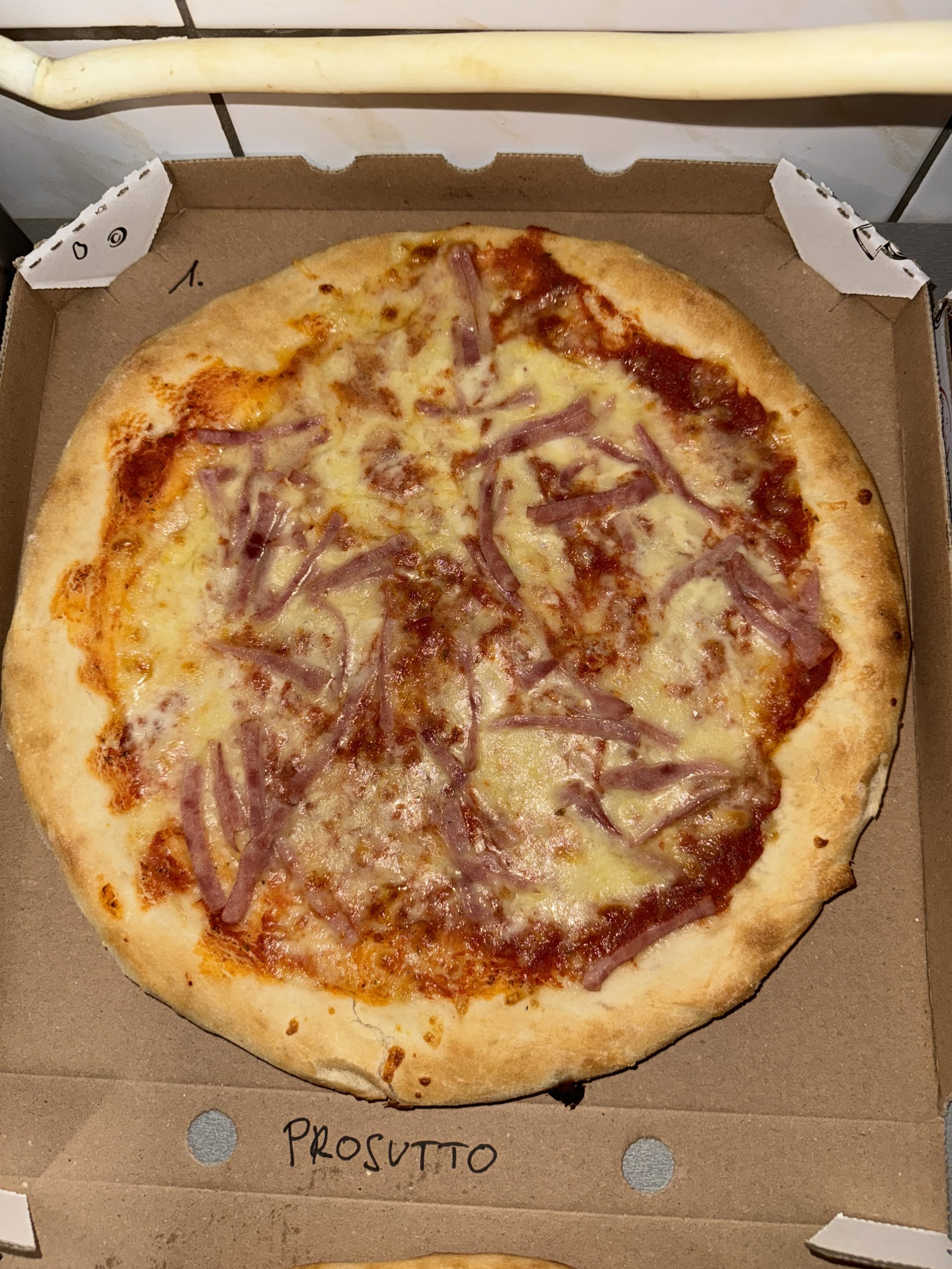 Egy igazi klasszikus, ami sosem megy ki a divatból! Vastag tésztán házi paradicsomszósz, bőséges mozzarella és finom sonka – minden falatja egy otthonos, laktató élmény.