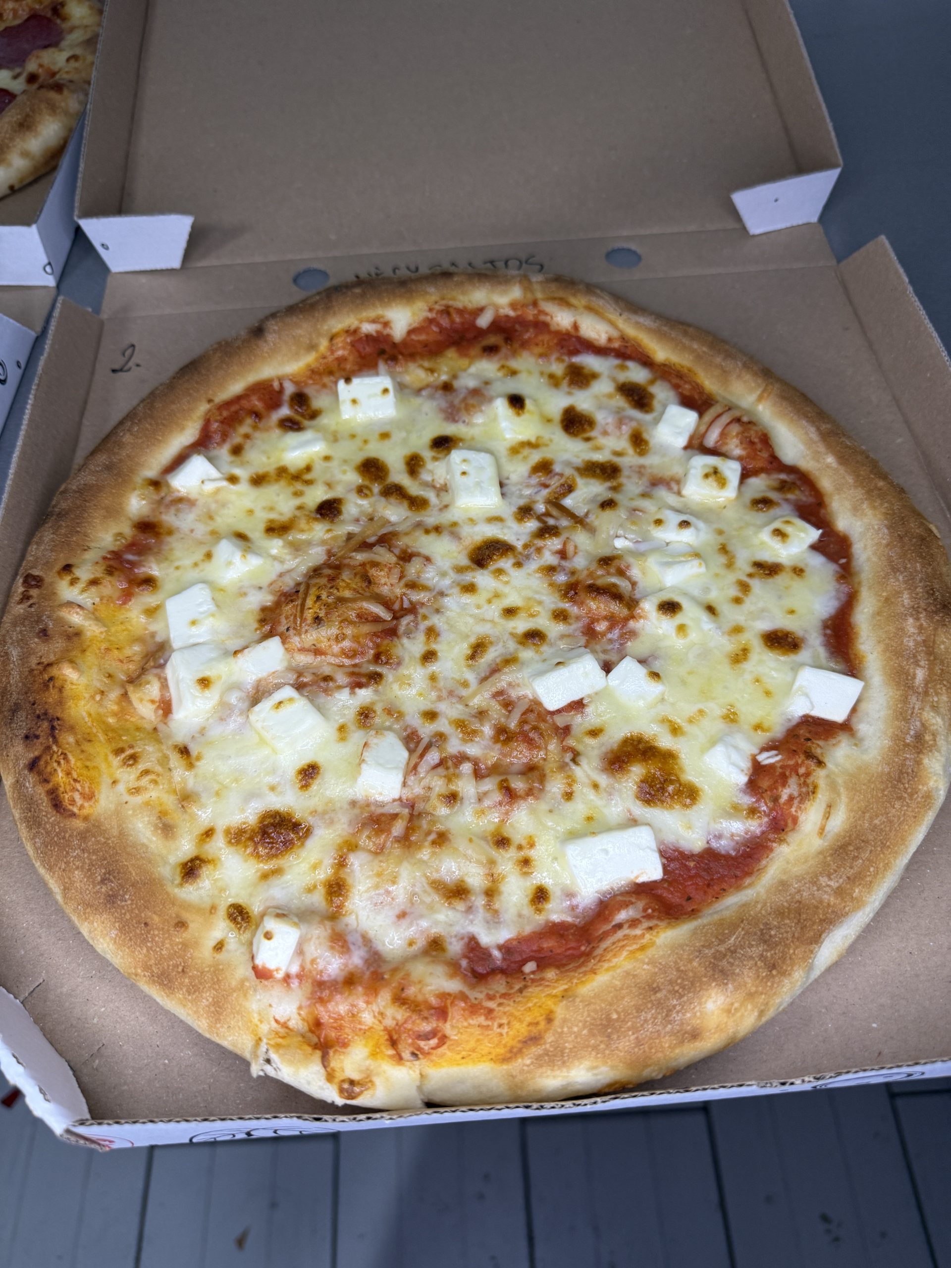 Négyféle sajt, egy tökéletes pizzán! Puha tésztán házi paradicsomszósz, krémes feta, karakteres márványsajt, olvadt mozzarella és füstölt sajt olvad egybe, friss bazsalikommal megkoronázva – igazi különlegesség a sajtimádóknak.
